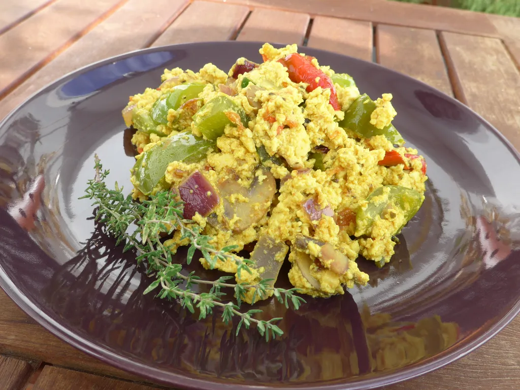 U posebnoj zdjeli drobiti meki tofu i pomiješati ga s kurkumom.